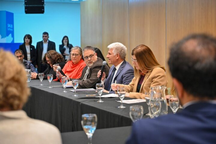 El gobernador Claudio Poggi, acompañado por el vicegobernador Ricardo Endeiza y la secretaria de Legal y Técnica, Fabiana Zárate, encabezó una reunión con los