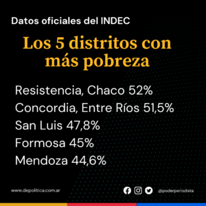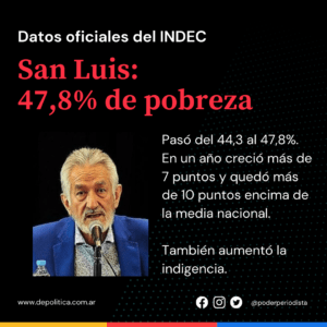 Los datos oficiales del INDEC ubicaron a la provincia de San Luis 47,8% en el tercer escalón de los distritos con mayor pobreza luego de Chaco 52% y Entre Ríos 51,5%, de todo el país.