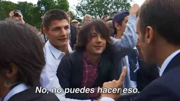 En el ejemplo del Presidente francés Emmanuel Macron, lo que le reclama y exige a ese adolescente no es el respeto a su persona, sino al cargo que expresa la institucionalidad máxima de ese país, el de Presidente de Francia en una fecha patria.