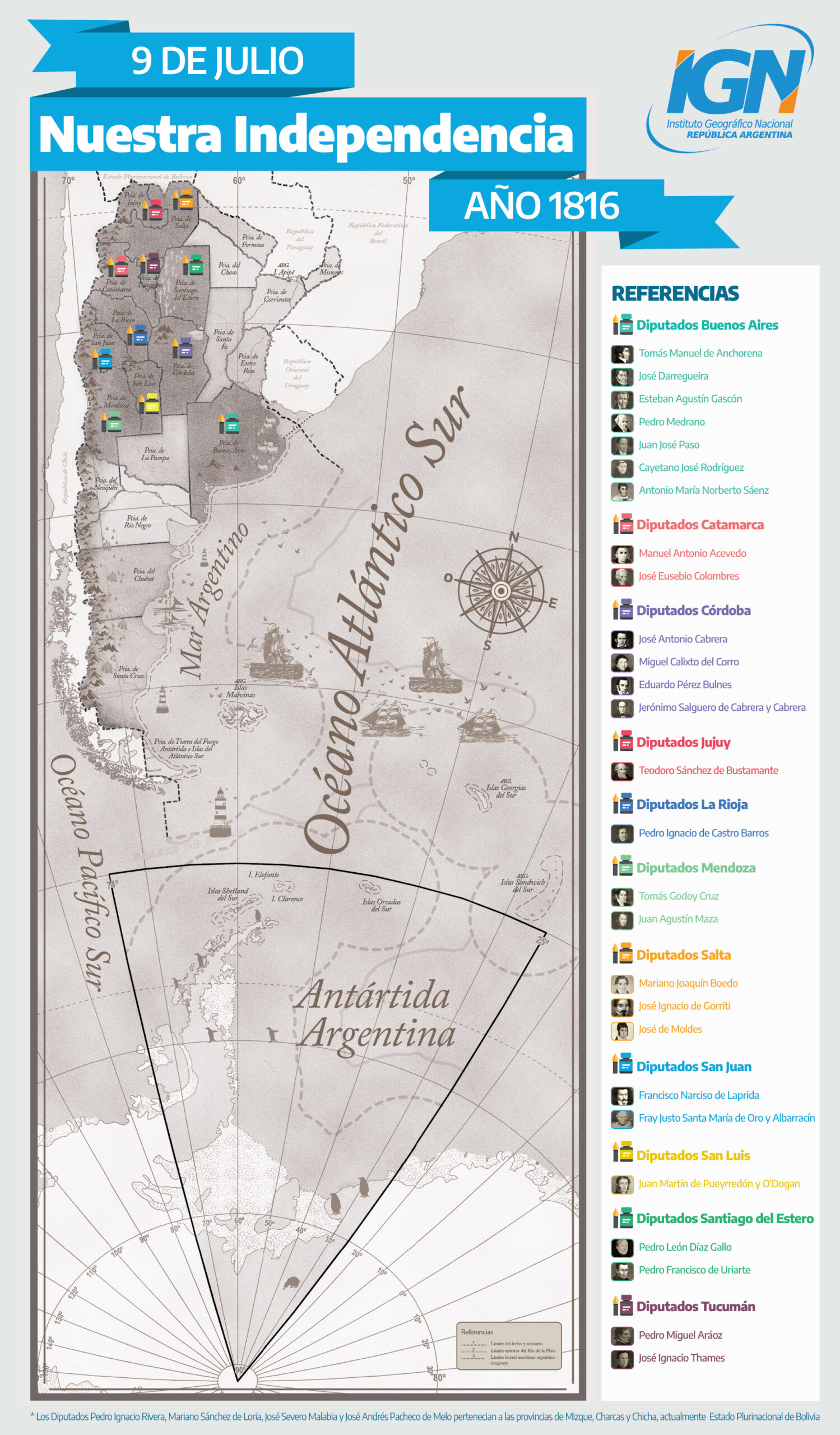En este contexto se convocó al Congreso de Tucumán, que inició sus sesiones el 24 de marzo de 1816. Como se verá en la imagen a continuación, sólo un puñado de las actuales provincias formaban parte de aquella nación en ciernes; otras aún no habían nacido como provincia o no mandaron o no les aceptaron congresales por sus diferencias políticas.
