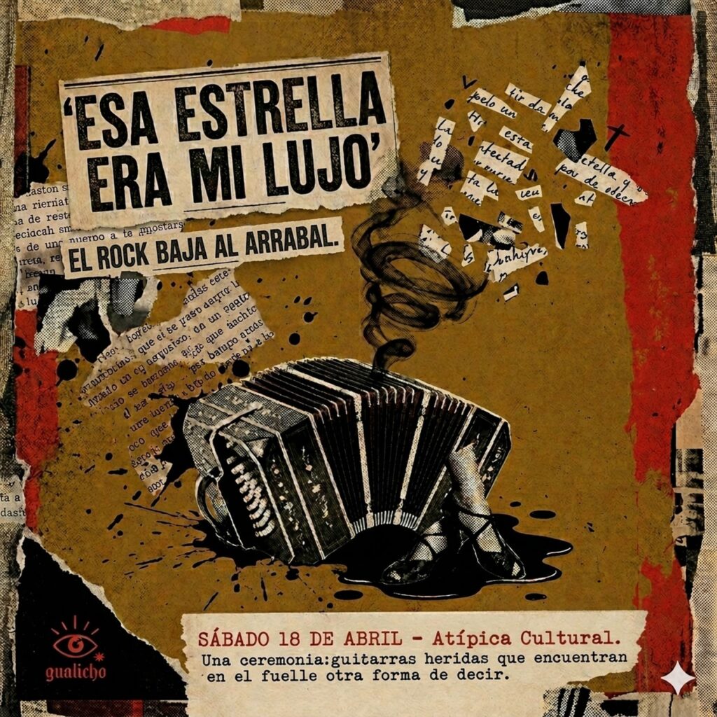 En el revés de la ciudad, allí donde el tiempo se detiene a fumar un cigarrillo con la muerte – como en un poema de Pizarnik -, surge una invitación que es, en rigor, un conjuro. Este sábado 18 a las 20:30 hs, Atípica Cultural abre sus puertas para el Gualicho del 2×4, una ceremonia que no busca la complacencia, sino la colisión estética entre el rock de los Redondos y la metafísica del Tango.