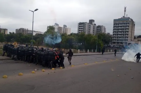 Morales hizo referencia al avance de los manifestantes que intentaron ingresar a la Legislatura de la Provincia donde, en su interior, se tomaba juramento de la reformada Constitución jujeña. Afuera, la policía reprimía con balas de goma y gases lacrimógenos.