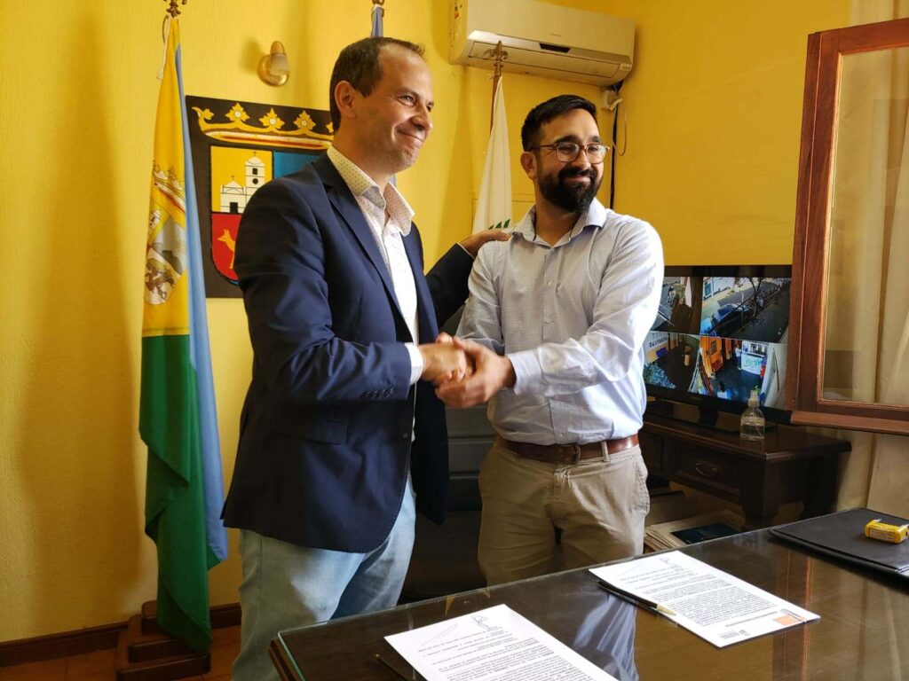Posteriormente se reunió con el intendente de Merlo, Juan Alvarez Pinto con quien firmó un convenio de cooperación entre ambos municipios para intercambiar experiencias y capacitación profesional en cuestiones vinculadas a la gestión municipal.