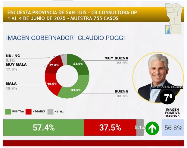 El dato cobra especial relevancia tras el claro triunfo electoral del frente Ahora San Luis, encabezado por Poggi, en los comicios del pasado 11 de mayo. En esa ocasión, su espacio se impuso por una diferencia de 21 puntos sobre el frente justicialista liderado por el ex gobernador Alberto Rodríguez Sáa, que quedó en segundo lugar.