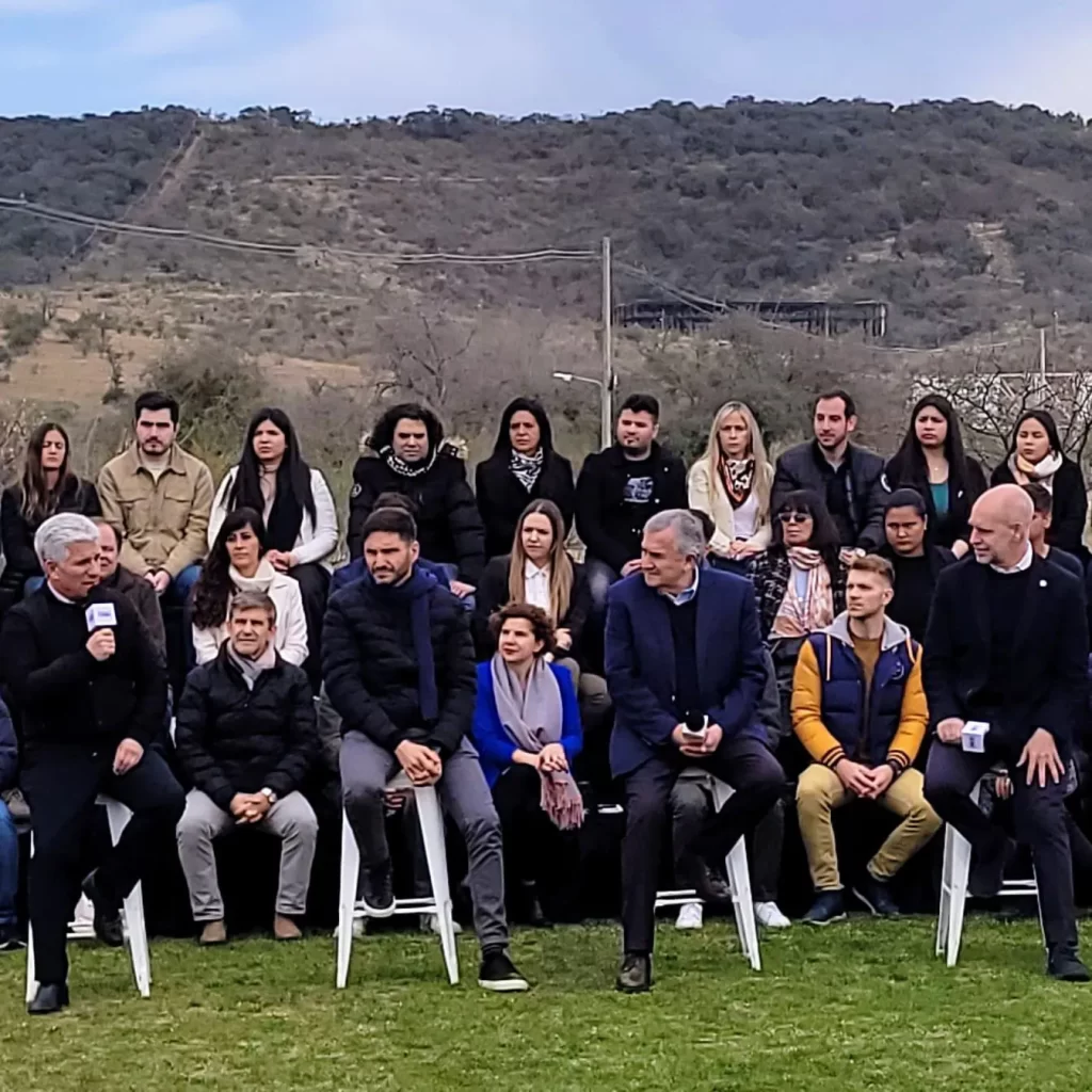 También acompañaron los gobernadores electos Carlos Sadir, de Jujuy; Nacho Torres, de Chubut; y Marcelo Orrego, de San Juan; el candidato a gobernador y ganador de las PASO en Santa Fe, Maxi Pullaro; y el diputado nacional, Rodrigo de Loredo.