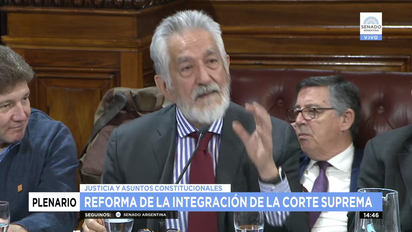 El Gobernador de San Luis, Alberto Rodríguez Saá fue uno de los mandatarios oficialistas que expusieron en el plenario de las comisiones de Justicia y Asuntos Penales y de Asuntos Constitucionales, del Senado de la Nación para defender la iniciativa de llevar de 5 a 25 los jueces de la Corte Suprema.