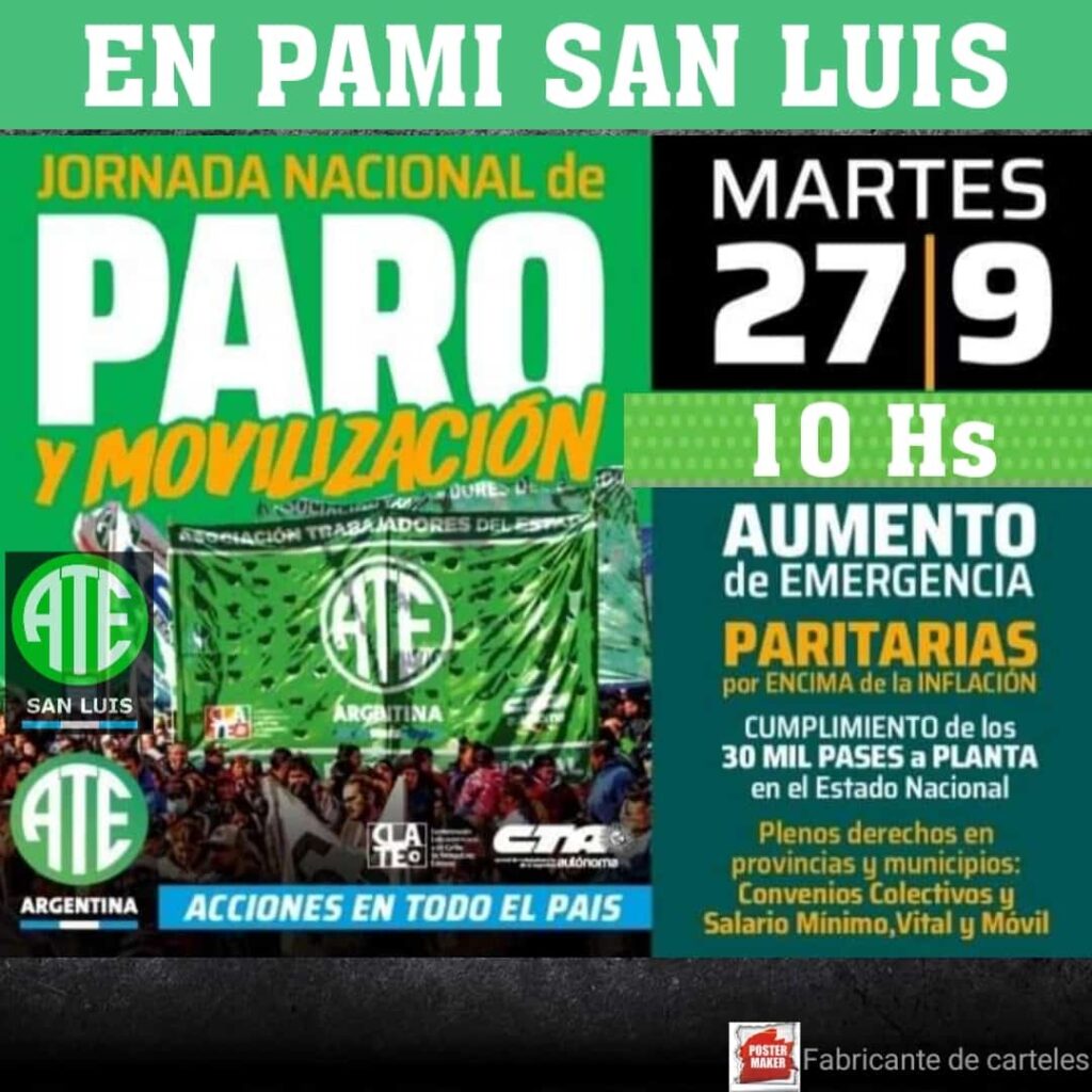 Un paro nacional por parte de los trabajadores de ATE deja a San Luis sin vuelos comerciales este martes 27, con una cancelación por 24 horas y una protesta frente a las oficinas del PAMI.