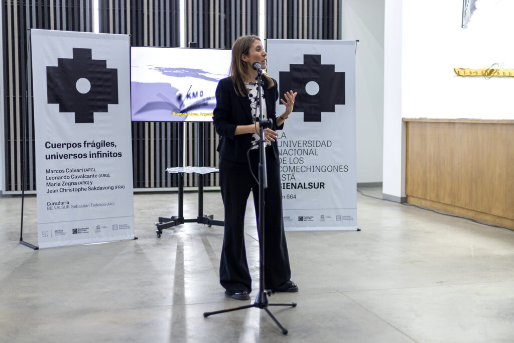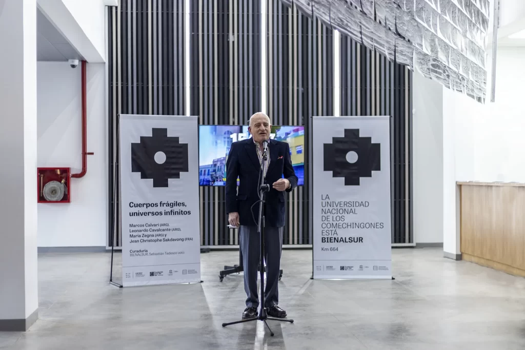 “Para nosotros es un orgullo inmenso y una posibilidad enorme ser sede de Bienalsur. De este modo, a través del arte, estamos conectados desde Merlo con todo el mundo y abrimos el espacio para la integración de nuestras y nuestros docentes y estudiantes de Artes Visuales”, dijo la rectora Rodríguez Saá.